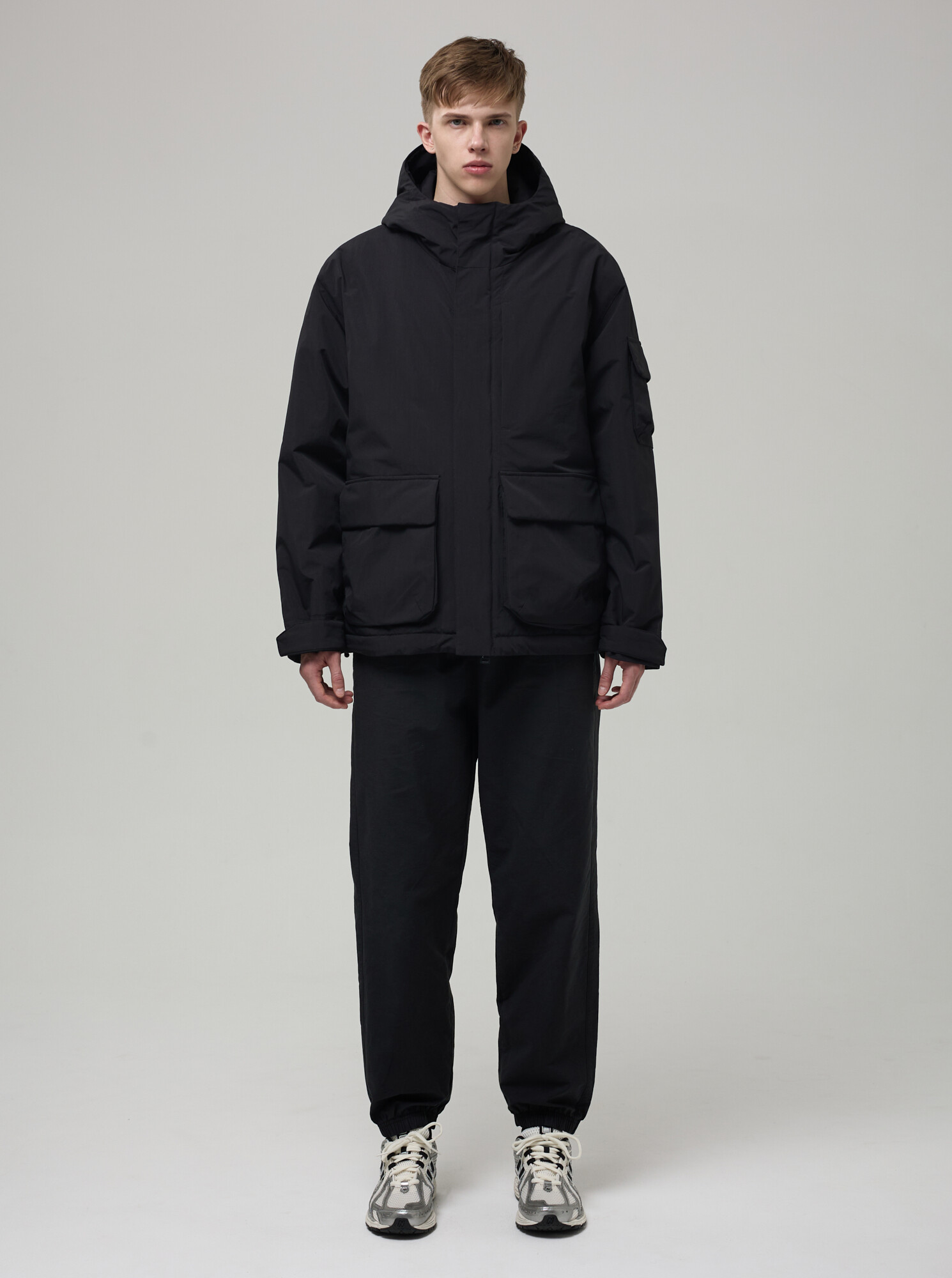 - карманы наружные - 2 боковых объемных накладных кармана с двойным входом, 1 карман на молнии на груди, 1 накладной объемный карман на рукаве. Накладные карманы с клапаном на магнитах.
