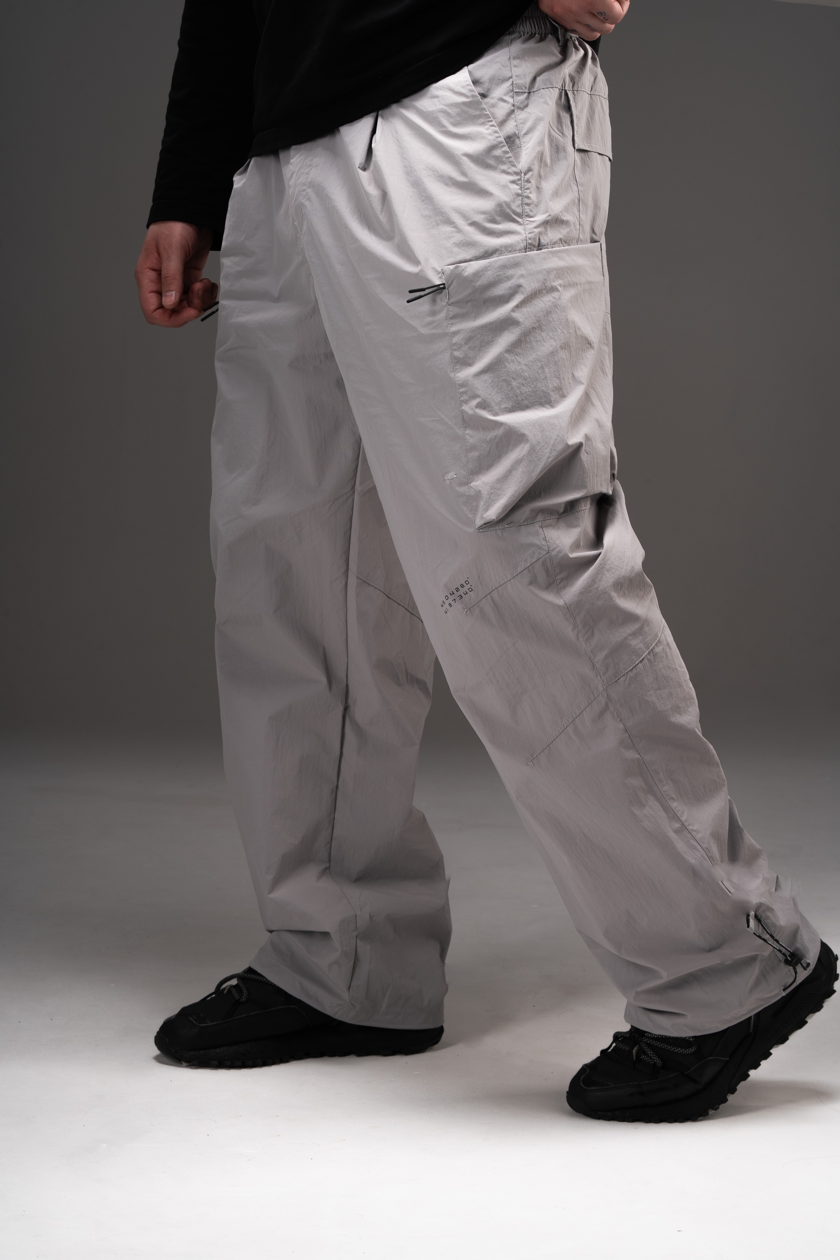 Новая модель легких карго брюк, отсылающая нас к Токийскому уличному стилю. Свободная и объёмная штанина с возможностью утяжки снизу с помощью фирменной резинки, встроенный пояс, который затягивает металлический фиксатор на стропе. Оригинальная конструкция боковых карманов с молнией, спрятанной в ответной части кармана и фирменным лого справа. Зарекомендовавший себя карман для телефона, теперь уже увеличенного размера и конечно же фирменный брендинг в стиле нашей предстоящей весенней коллекции: координаты Ставрополя на колене.
